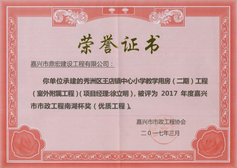 • 2017年嘉興市市政工程-南湖杯獎