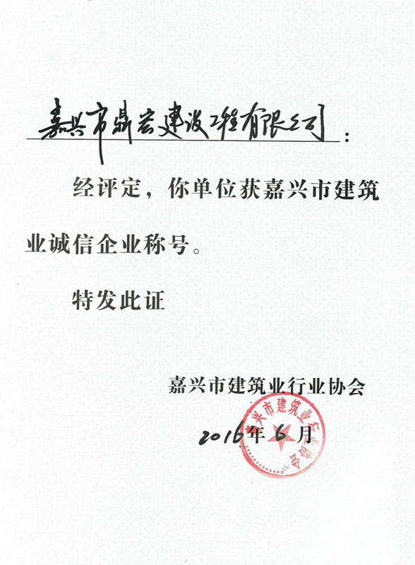 嘉興市建筑業(yè)誠信企業(yè)