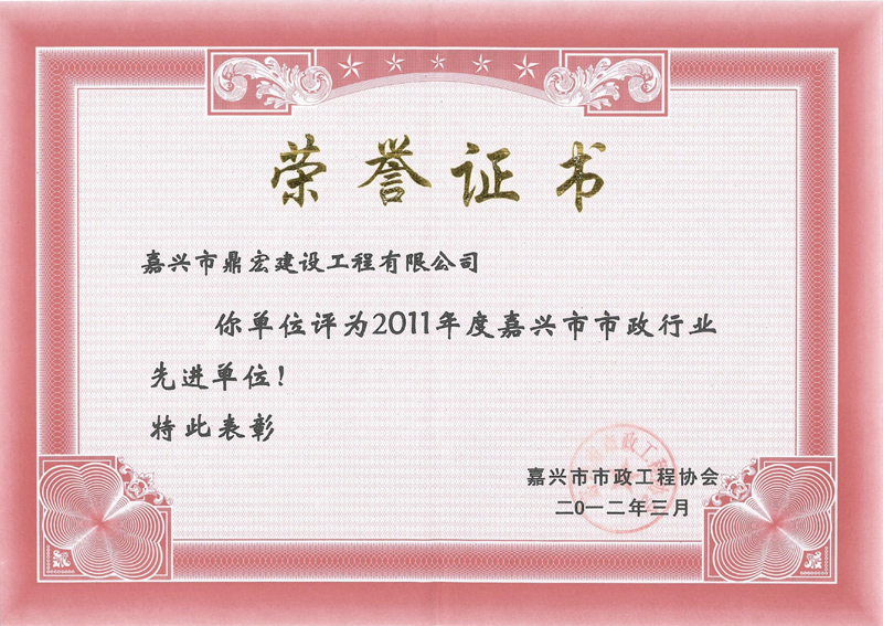 2011年度嘉興市市政行業(yè)先進(jìn)單位